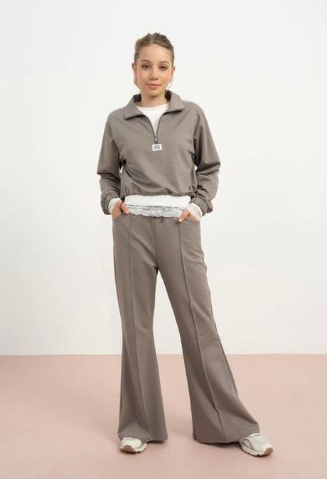 LOCO YARIM FERMUARLI KOL VE BEL KISMINDA DANTEL DETAYLI EŞOFMAN TAKIMI